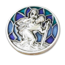 Eine magnetische Autoplakette mit dem Heiligen Christophorus, dem Schutzpatron der Autofahrer und Reisenden und einer Emaille Auflage.