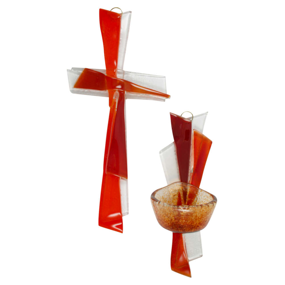 Gebets-Set Glaskreuz - Glas Weihkessel rot Unikate