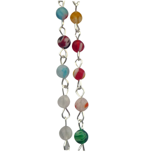 Ein schöner, gekettelter Rosenkranz aus kleinen bunten Glasperlen und einem Kreuz aus bunten Muranoglas.