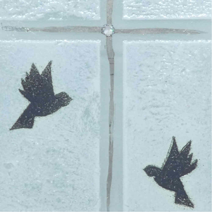 Dieses wunderschöne silberfarbene Kreuz wurde aus flüssigem Platin in das Glas eingeschmolzen.