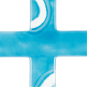 Ein modernes Glaskreuz in hellblau für die Wand.