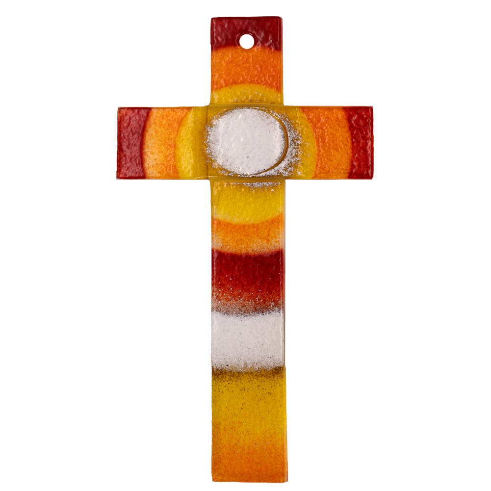 Glaskreuz rot - orange - gelb - weiß modern aufgehende Sonne Handarbeit 20 x 11 cm