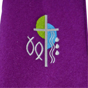 Gotteslobhülle Wollfilz violett Motiv Kreuz Fische Wasser Reisverschluss ca. 19 x 13 cm Handarbeit