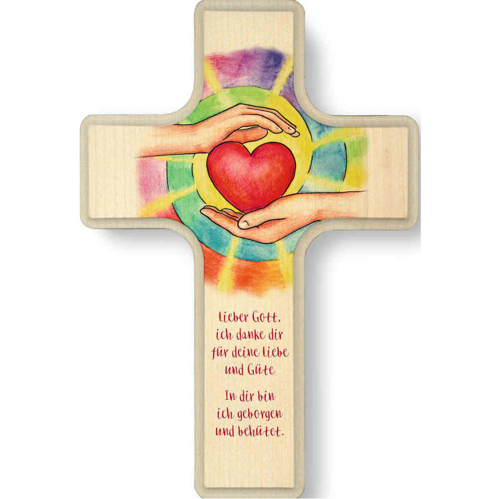 Kinderkreuz Strahlendes Herz Holz - geborgen und behütet 16 x 11 cm Taufkreuz Wandkreuz