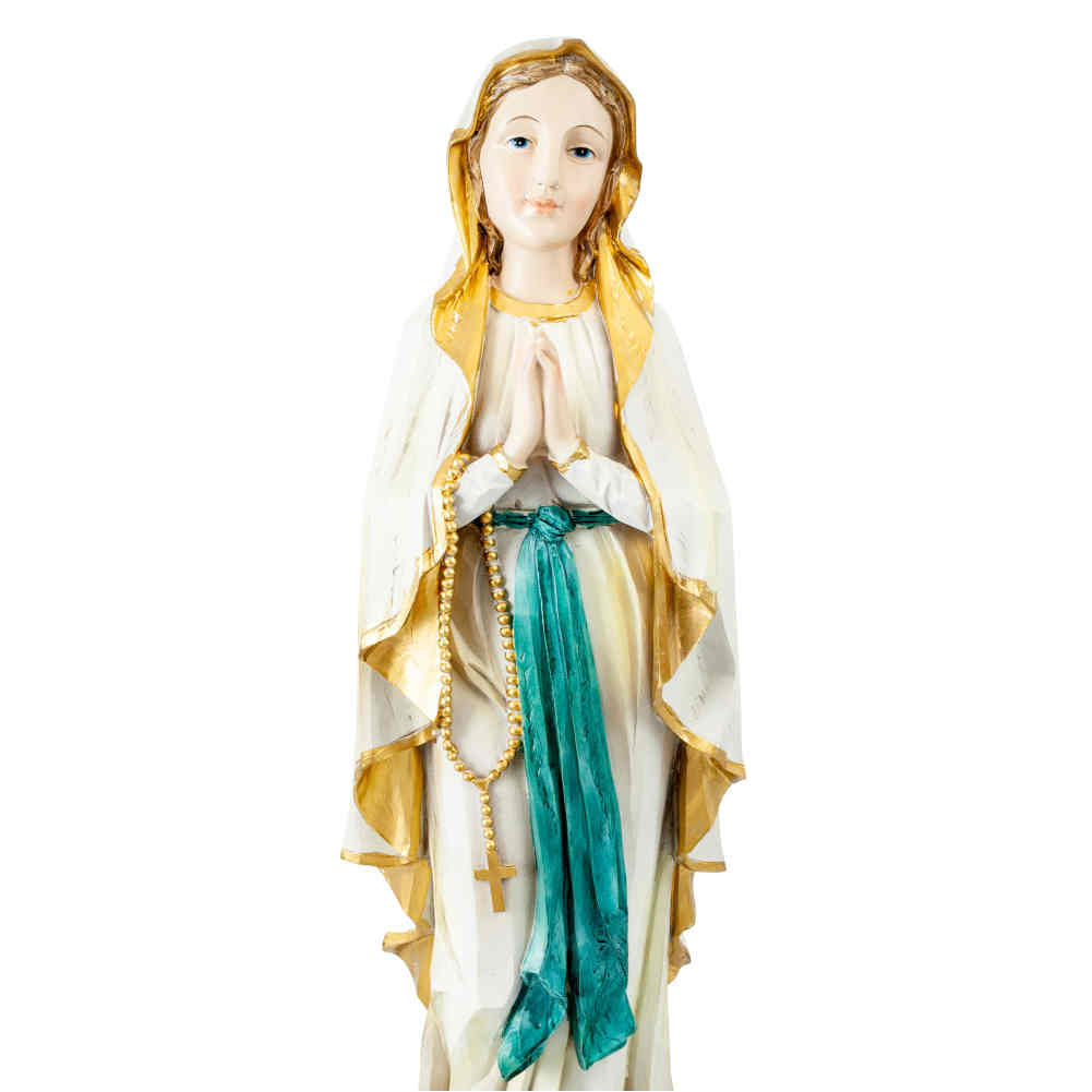 Eine edle Statue zur Verehrung der heiligen Jungfrau Maria - der Gottesmutter. Die Madonna Lourdes Statue ist aus Polyresin und wurde aufwendig mit der Hand bemalt. Die Statue ist nur für den Innenbereich geeignet.
