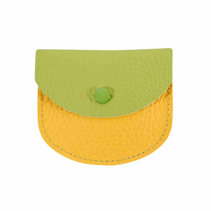 Ein Rosenkranz Etui aus Leder in hellgrün und gelb mit Druckknopf.