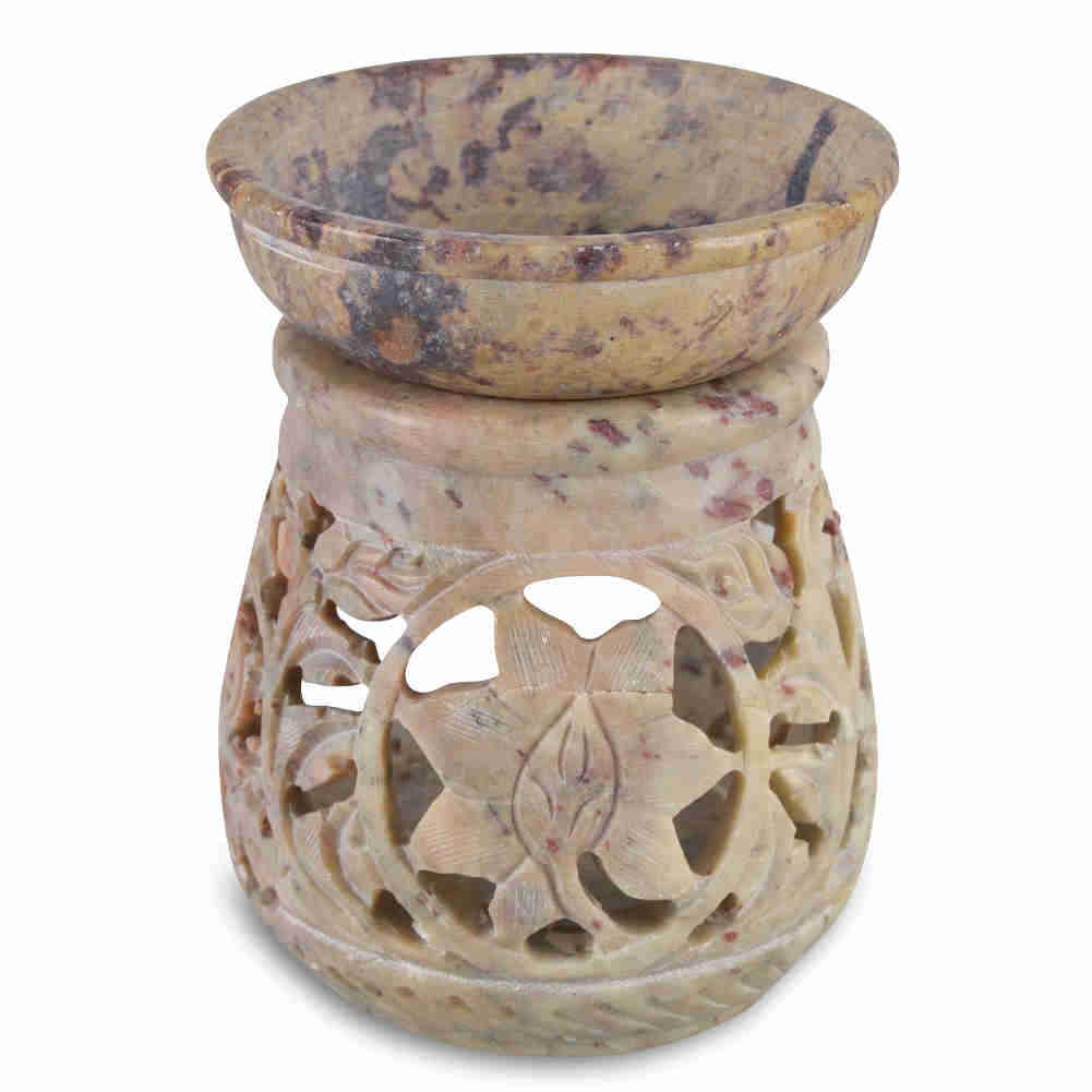 Speckstein Räuchergefäß Stövchen Motiv Blume Blätter beige Schale & Sieb 10 x 7,5 cm