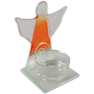 Teelichthalter Engel Spirale orange - weiß Glas 8 x 10 x 6 cm