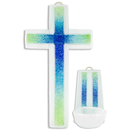 Gebets-Set - Glaskreuz & Glas Weihkessel weiß - Auflage blau - türkis - grün